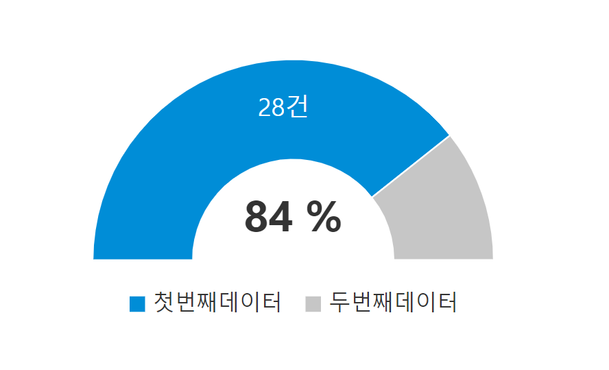 - 하프 도넛은 일반 도넛 차트와 옵션 설정을 동일하며, plotOptions 내 startAngle, endAngle 만 지정해 주면 됩니다.