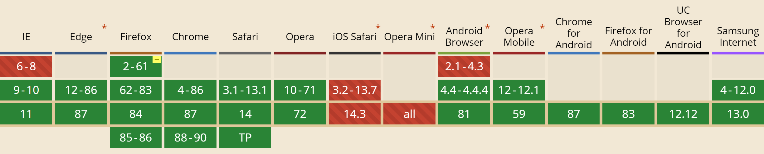 - 최신 브라우저에선 대부분 지원되며, 파이어폭스 61이하 버전에선 "-moz-" 벤더 프리픽스가 필요합니다.