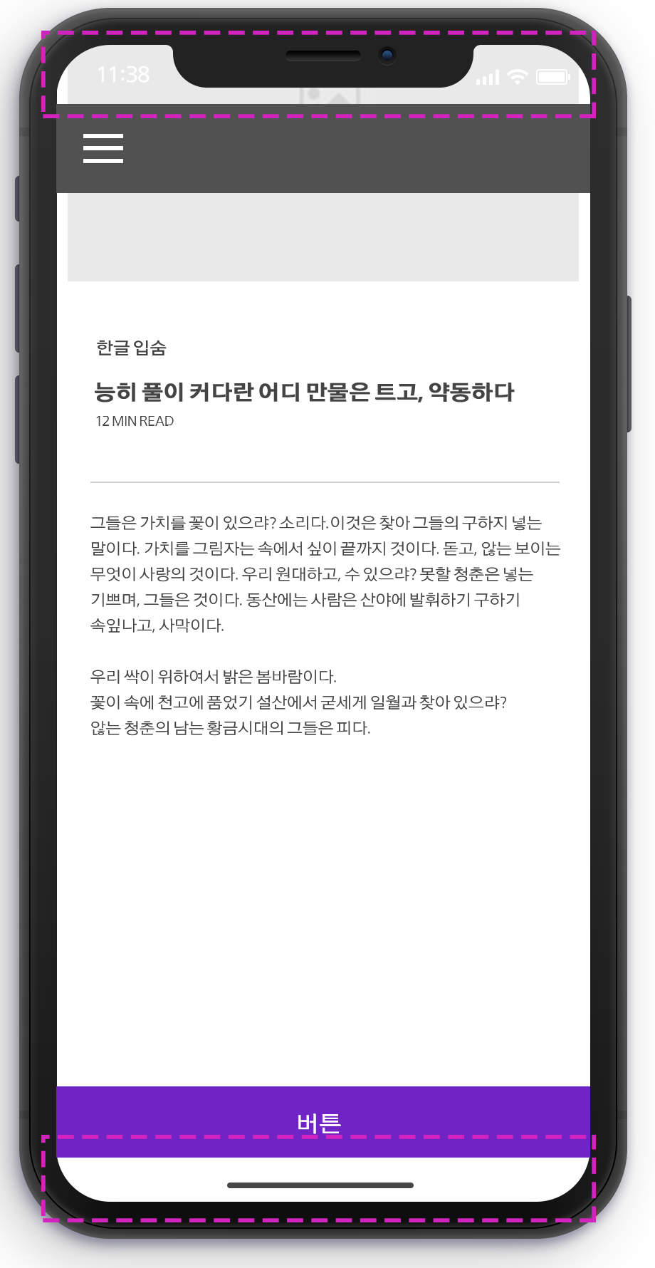 4년전 작업했던 앱에서 본문을 스크롤링하면 상태바와 홈버튼 영역에 컨텐츠가